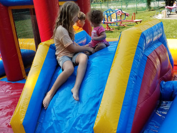 Our Tot Town combines low air cushioned exterior walls, multiple activities and vivid colors. Toddlers enjoy 289 square feet of unique exploring, crawling and climbing fun. With 5 wonderful sections including an obstacle area, tunnel, castle, slide and mini ball pit, Tot Town will fascinate toddlers with hours of age appropriate activities especially designed for curious, energy packed, little ones.